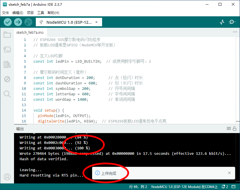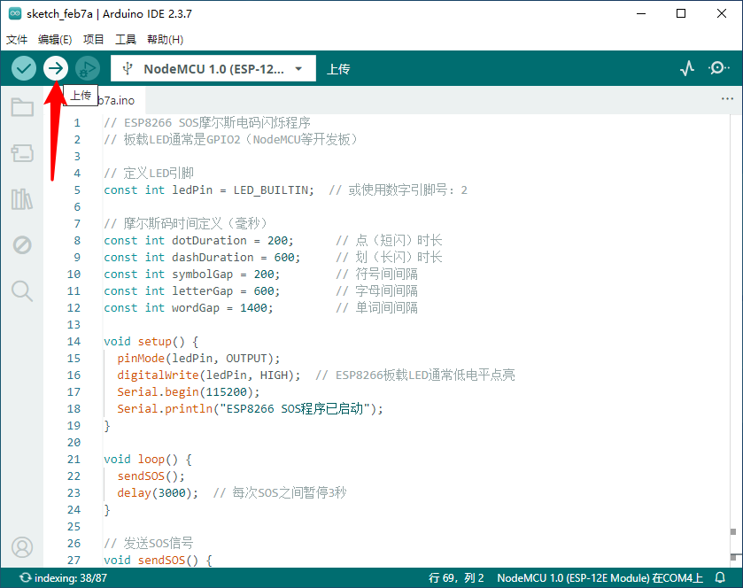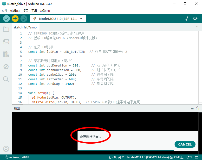 69// ESP8266 SOS摩尔斯电码闪烁程序