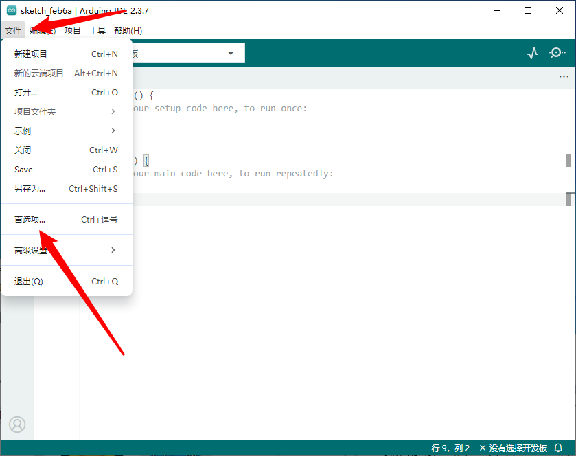 然后打开 Arduino IDE,点击 选择开发板,选择你的开发板的端口号(不知道的选COM1以外的)